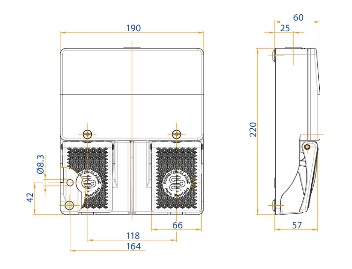Double foot switch, metal, 1NO+1NC slow action contacts each