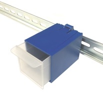 Great way to store fuses, screws etc in a convenient place. The DUMB box is easily mounted on DIN-Rail and the drawer can be adjusted to accommodate both vertical and horizontal DIN-Rail.