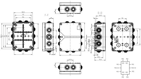 Junction box, IP55, IK07, double insulation, VDE approved