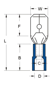 Nylon insulated Male disconnect AWG16-14 4.75×0.8mm. Blue