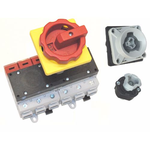 Panel mount disconnect switch with 300mm shaft and standard red/yellow rotary handle ‘Code 45’