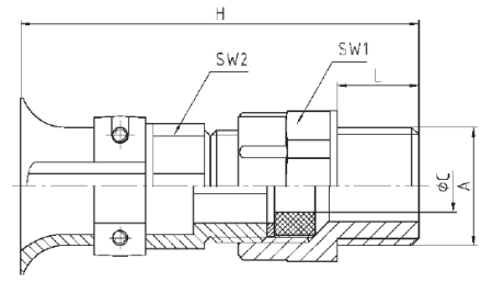Pg21 bend protection cable gland (“trumpet head”), brass nickel plated