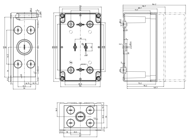 Industrial quality enclosures, IP66, IK08, double insulation, halogen free, cULus listed – Models with Pg knockouts are end of series – see model with metric knockouts part No. SP137-006