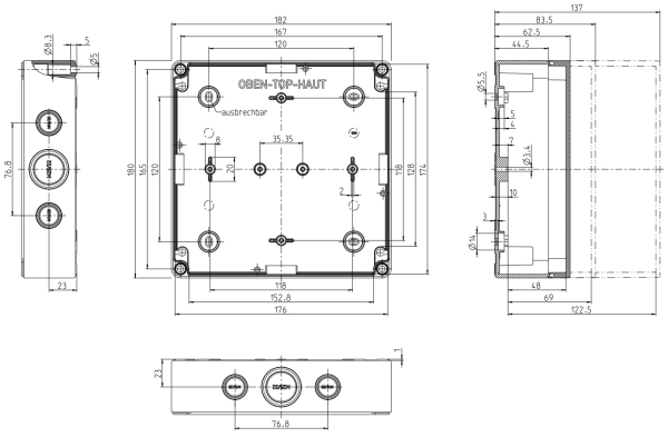 TK enclosure model PC 1818-8f-tm – polycarbonate (metric knockouts)