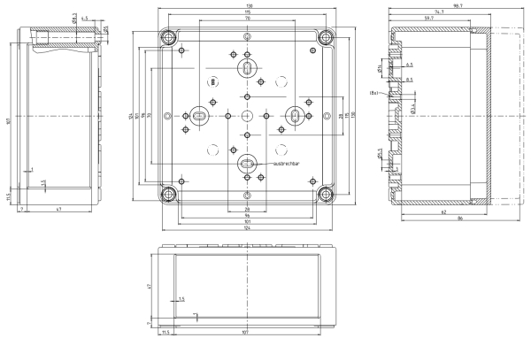 General purpose enclosure, IP66, IK07, double insulation, halogen free.