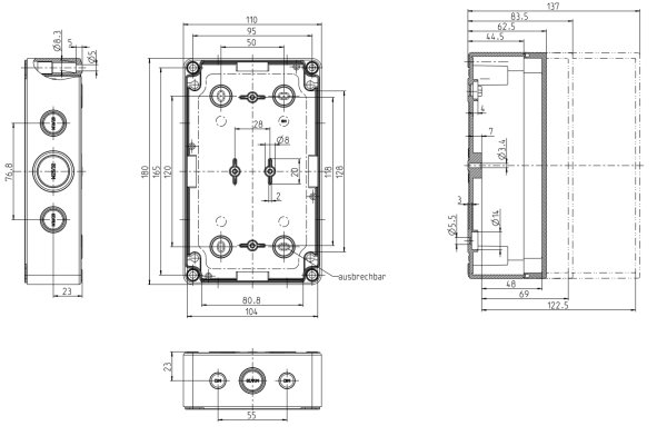 General purpose enclosure, IP66, IK07, double insulation, halogen free.