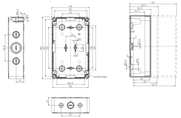General purpose enclosure, IP66, IK07, double insulation, halogen free.