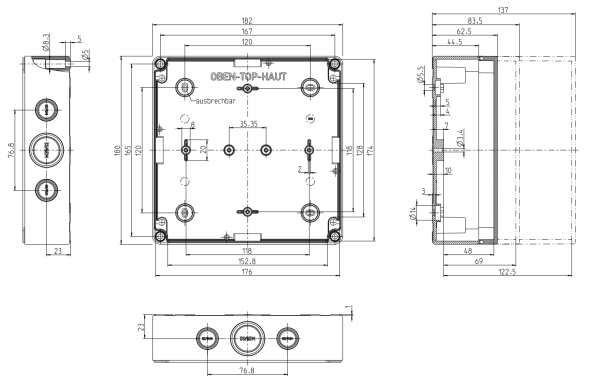 General purpose enclosure, IP66, IK07, double insulation, halogen free.