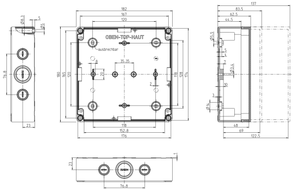 General purpose enclosure, IP66, IK07, double insulation, halogen free.