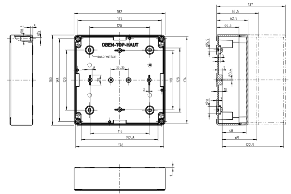 General purpose enclosure, IP66, IK07, double insulation, halogen free.