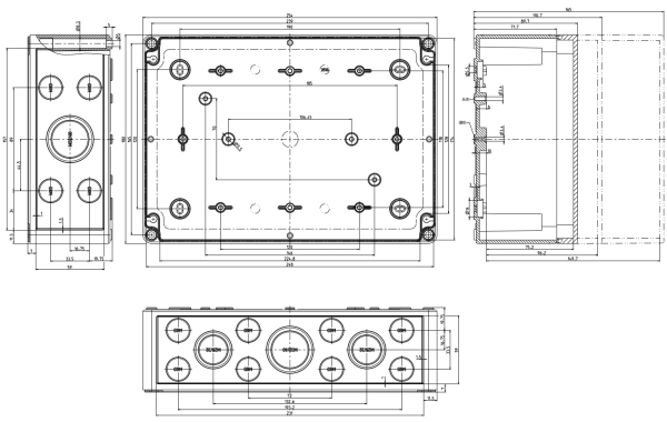 General purpose enclosure, IP66, IK07, double insulation, halogen free. – Models with Pg knockouts are end of series – see model with metric knockouts part No. SP107-008