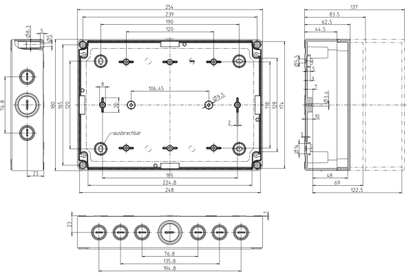 TK enclosure model PS 2518-8f-tm – polystyrene (metric knockouts)