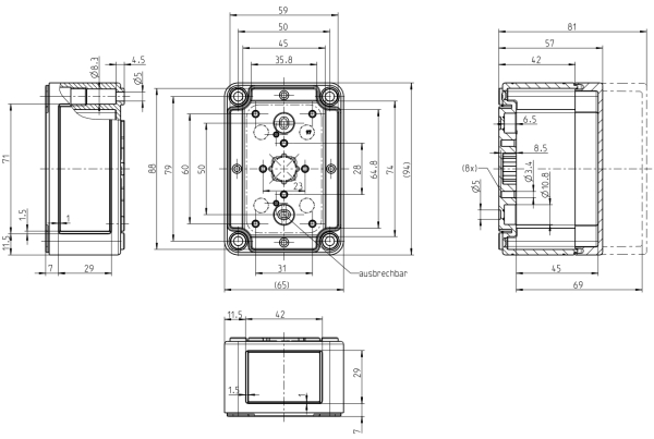 General purpose enclosure, IP66, IK07, double insulation, halogen free.