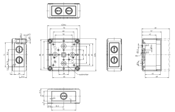General purpose enclosure, IP66, IK07, double insulation, halogen free.