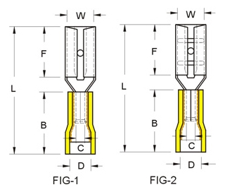 Vinyl insulated miniature female disconnect AWG26-22 2.8×0.8mm. yellow